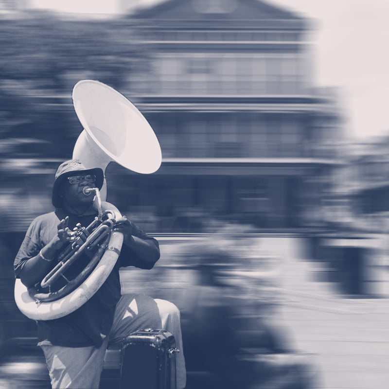 Photo taken in New Orleans French Quarter which boasts a rich tradition of street musicians who infuse the city's vibrant culture with soulful melodies. These street performers, often found in the French Quarter or along the historic Frenchmen Street, bring the spirit of jazz, blues, and brass bands to the sidewalks.